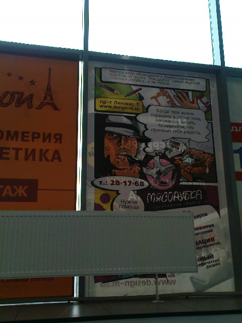 С первого взгляда видны образы: ганкстер, ножик мысорубки в крови, номер телефона и надпись "нужна помощь".